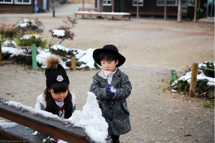 시간이 좀 있어 기다리면서 쌓여있는 눈을 가지고 놀더라고요.